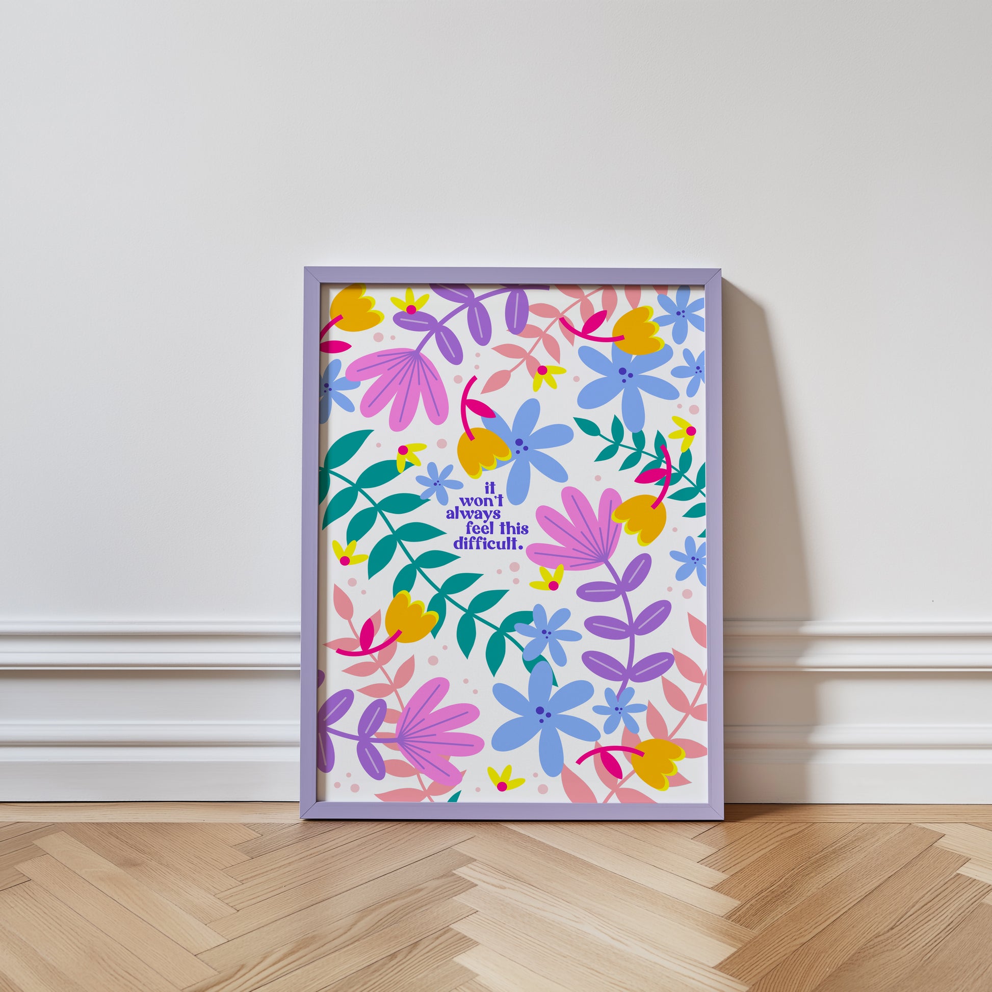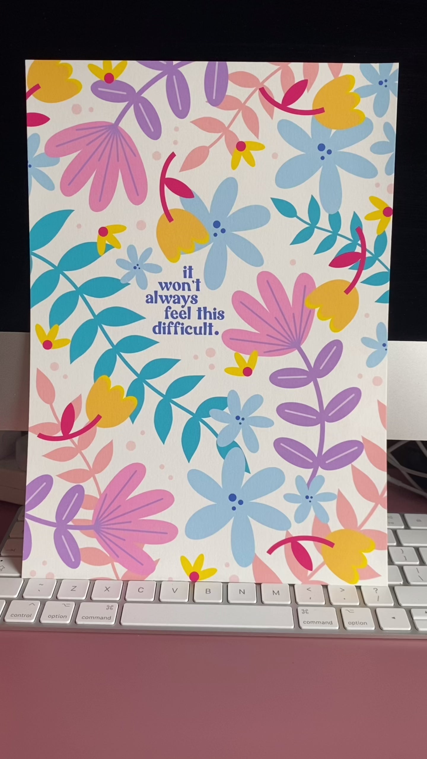 A colourful floral reminder for those difficult moments when life just seems to keep throwing you curve balls, it can and will get better. The text reads - 'It Won't Always Feel This Difficult'